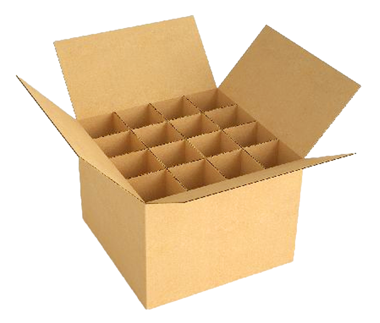 Carton boxes with partitions are specially designed corrugated containers featuring internal dividers to separate and protect multiple items within a single package. This configuration minimizes movement and contact between products, reducing the risk of damage during transit. Commonly used for glassware, electronics, and pharmaceuticals in logistics and retail.